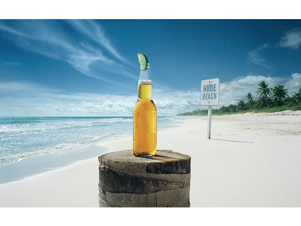 童話小編本日最愛!可愛的Corona到了天體海灘當然要入境隨俗,但是脫了標籤大家會不會認不出Corona啊?還好Andric Ljubodrag想到了Corona的正字標記──切片檸檬片!