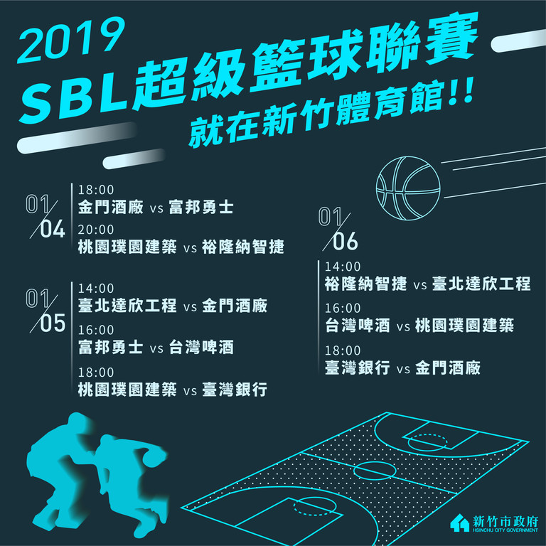 SBL超級籃球聯賽第16季「戰鼓再起」將於12月28日起,共有14場賽事,在新竹市立體育館熱情開打,開幕首戰將由裕隆納智捷對上臺灣銀行,這是睽違4季之後,SBL重回新竹市開打,歡迎球迷一同來新竹市立體育館,欣賞精彩籃球賽事。