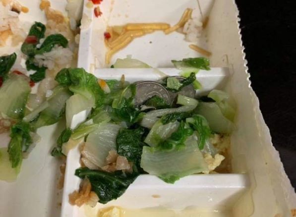 ▲15元硬幣埋在配菜裡。(圖/翻攝自爆廢公社)