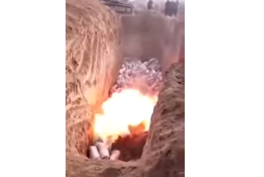影片中未指出這段影片拍攝的時間、地點,但畫面中可清楚看見,防疫人員用怪手將豬推入幾公尺深的大坑裡,接著往坑裡點火,這些活生生的豬立刻發出淒厲慘叫,背上燃燒著大火的豬痛苦地想逃出坑,期間坑上的人還不斷丟入樹枝,防止烈火熄滅。而令外一段畫面則是疑似已經發病的豬,直接被拋入坑內,裡面還有許多稻草與死亡的豬,隨後一把火直接落在豬的背上,哀嚎聲四起,火熄滅後,只剩被燒得焦黑,尚存一絲氣息的豬層層堆疊在坑裡。網友紛紛在影片下方批評,為何不採取更人道的做法,先行麻醉後再處理,更形容豬的慘叫聲是「來自地獄的聲音」。