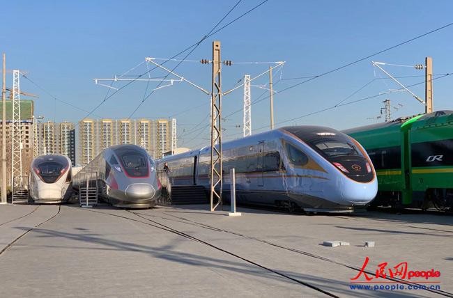 ▲中國鐵路科技創新成就展上展出的多款「復興號」系列列車。(圖/翻攝自人民網)