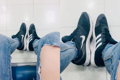 有時候急急忙忙出門,兩隻腳穿了不同的鞋子或襪子好尷尬。一名女網友日前趕著去醫院看醫生,出門時順手抓了2隻黑色的鞋子穿上就走了,結果到了醫院才發現,鞋子竟然一隻是Nike的,一隻是Adidas。網友們看到她分享的照片都直呼「太潮了」,還有不少網友覺得這款「Nike和Adidas聯名」的限定鞋很有型。