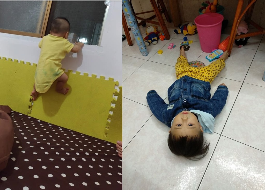 幾個月大的孩子常常會在家裡到處爬來爬去探索這個世界。一名媽媽在臉書上貼出他兒子的照片,這小孩從8個月大的時候就開始到處爬,甚至會用手勾住窗框,想要往外爬,即使現在已經2歲了,仍然改不掉愛爬高高的習慣,讓她和老公每天都提心吊膽,擔心兒子會不小心跌倒受傷,甚至為了孩子還在家中裝監視器。