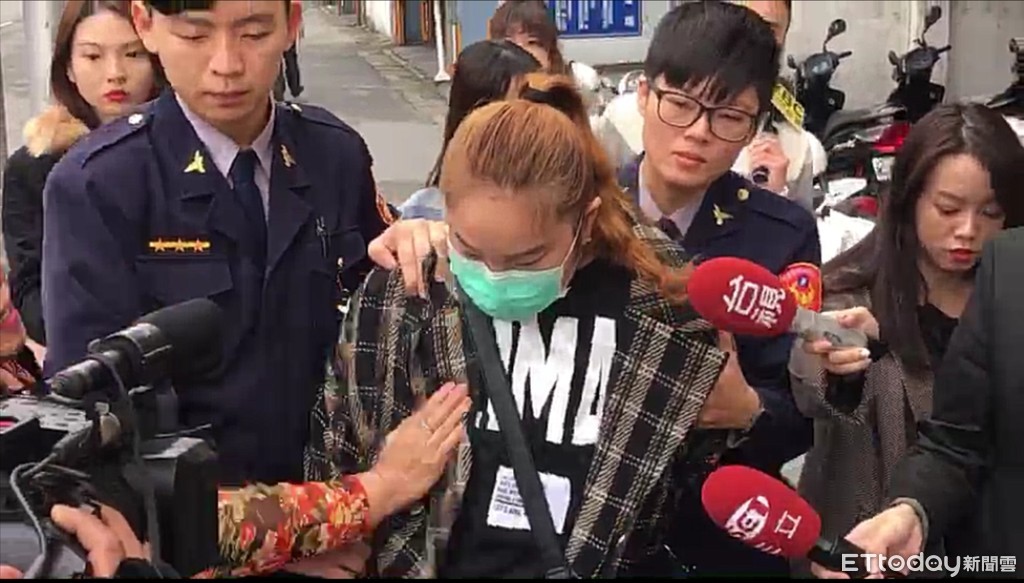 ▼女子涉嫌偷走90萬精品,遭警移送時被自己母親搥打。(圖/翻攝畫面)