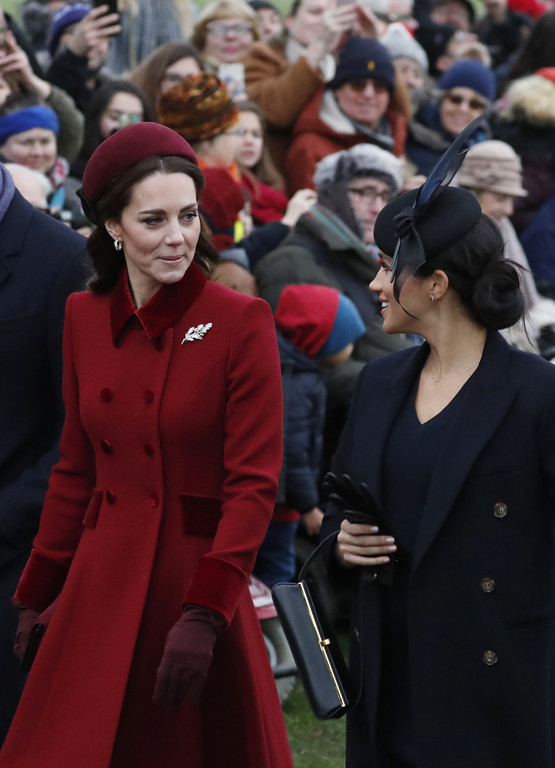 英國2位王妃凱特(Kate Duchess of Cambridge)和梅根(Meghan Duchess of Sussex)近來妯娌不合的流言瘋傳,不過2人於25日一起出席了耶誕節禮拜儀式,公開亮相時有說有笑,互動相當親密,打破外界關於2人「不合」的流言。