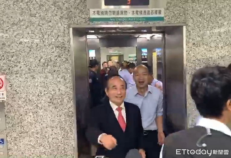 韓國瑜則親自下樓迎接王金平,「非常感謝王院長出錢出力出汗,院長投入許多精力,他告訴我一句話讓我非常深刻,從事政治活動,要有人飢己飢人溺己溺的精神,政教合一。」