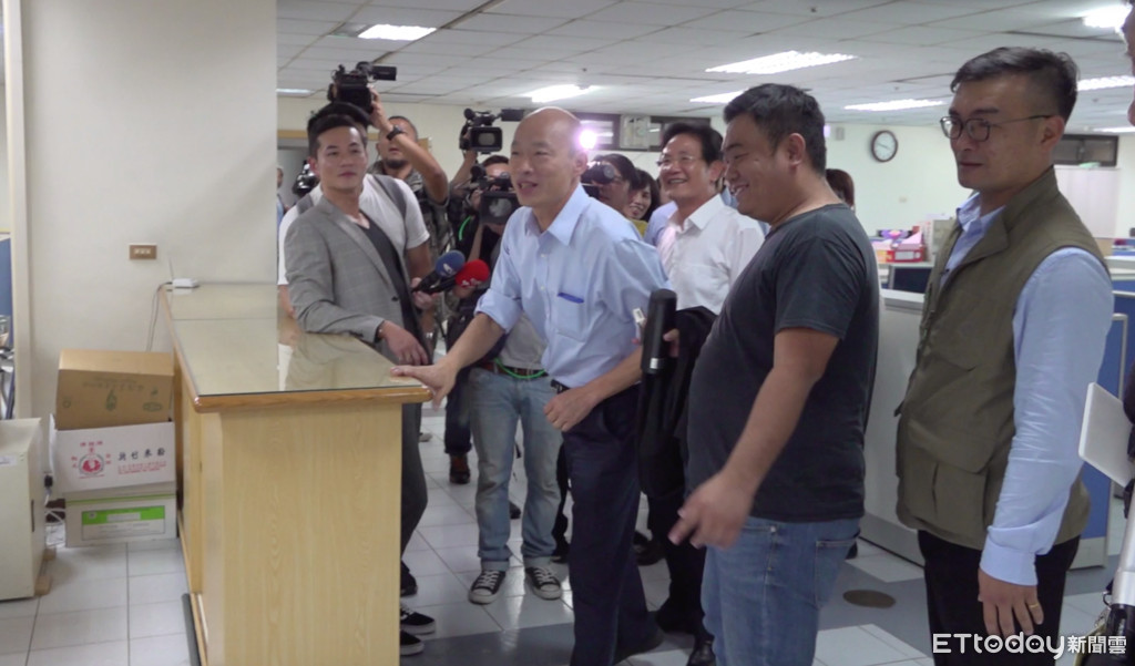 可能是韓國瑜每次現身的時候,身旁都會緊跟大批媒體記者,所以讓帶路的市府同仁相當緊張,頻頻繞路,讓韓國瑜也忍不住笑了問:「你真的熟嗎?」韓國瑜從二樓的政風室一路往上,一一跟市府同仁打招呼,也充分展現了韓國瑜的親切風範。