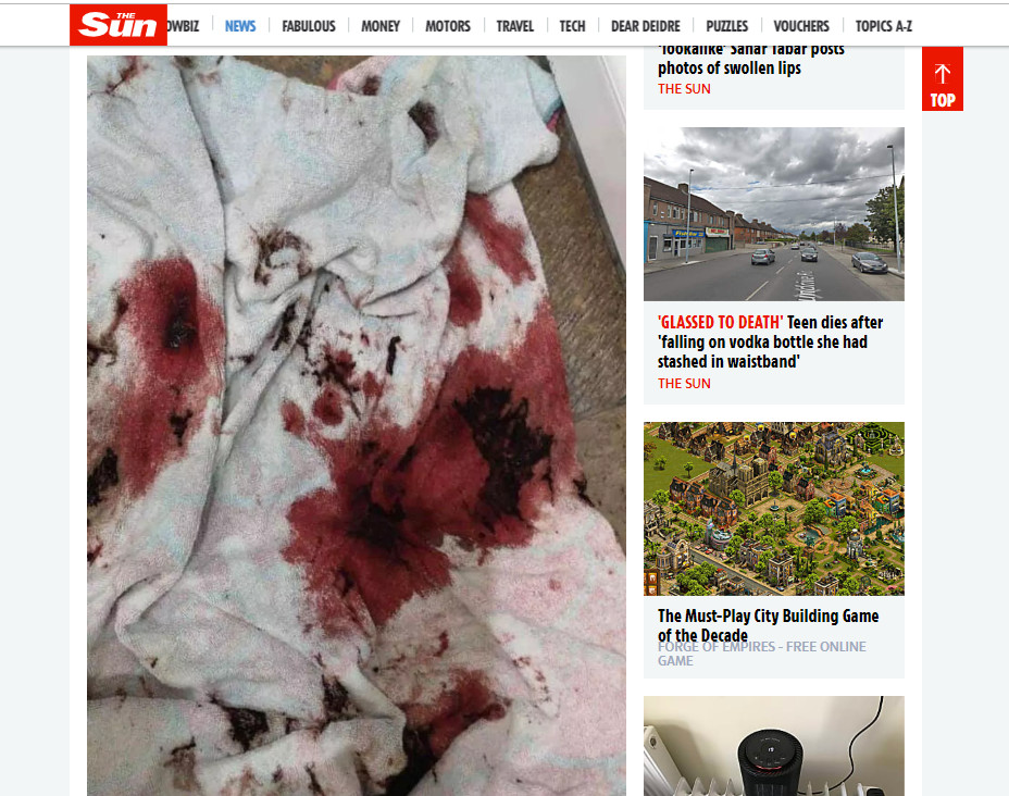 ▲滿是血跡的棉被。(圖/翻攝自太陽報)