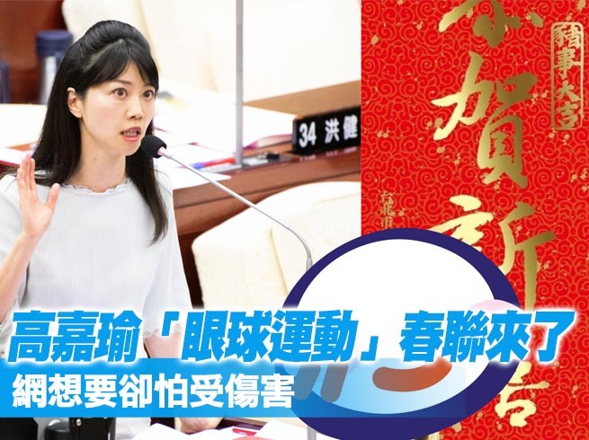 春節將至,政治人物紛紛準備發放春聯。民進黨台北市議員高嘉瑜日前才在臉書上貼出4張照片,詢問民眾哪張適合放在春聯上,今樣品照搶先曝光,分別有「抱豬甜笑款」及「眼球運動款」,讓網友再度融化。