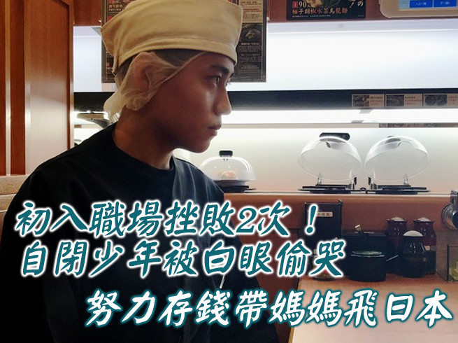 桃園19歲的小洋小時候被診斷出自閉症,他生性害羞,說話緩慢,高職畢業後,經過伊甸基金會媒合工作,曾擔任工廠員工,也做過公司大樓清潔員,但被同事冷眼相待,回家忍不住流淚。今年3月,不氣餒的他進入來自日本的知名迴轉壽司店工作,如今已穩定就業10個月,他努力存錢,希望有天能帶媽媽去日本玩。