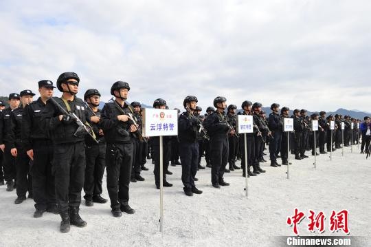 廣東省公安廳特警「冬訓」練兵比武於27日在廣州拉開序幕,本次比武以「山地捕殲」為主題,來自全省21支參賽隊伍230名特警隊員將圍繞著「徒步武裝奔襲」、「山地叢林殲捕」、「山地叢林夜間偷襲」等科目,荷槍實彈的展開競爭角逐。