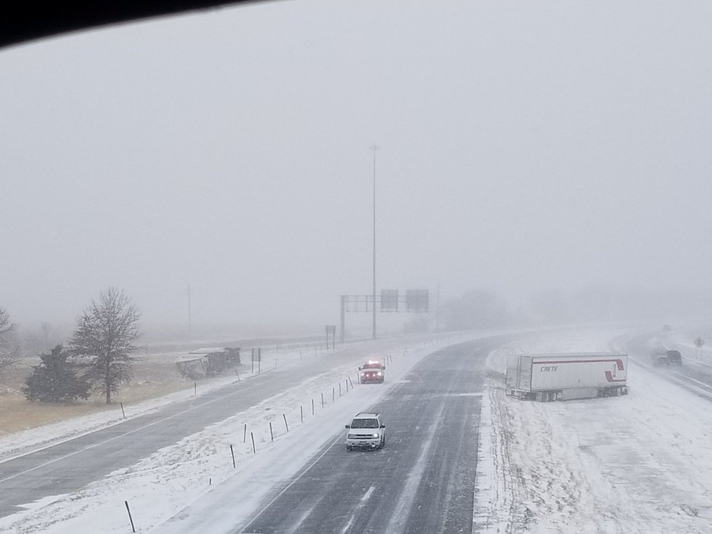 ▲美國中西部大雪,內部拉斯加州一輛卡車打滑停在公路旁。(圖/路透)