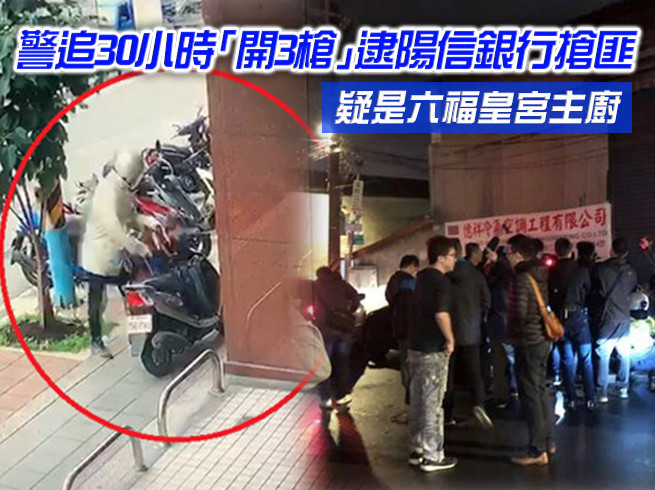 據了解,該名搶匪疑似是六福皇宮的主廚,將作案用衣服、提袋、鞋子等棄置於自行車租借站公廁內,又拿贓款前往台北市贖回日前典當的自小客車後返家,警方掌握其行蹤,在其開車至大觀路時要將其攔下,但搶匪卻拒捕加速衝撞,員警才開4槍將其制伏,目前家中剩餘款項警方仍在清點當中。