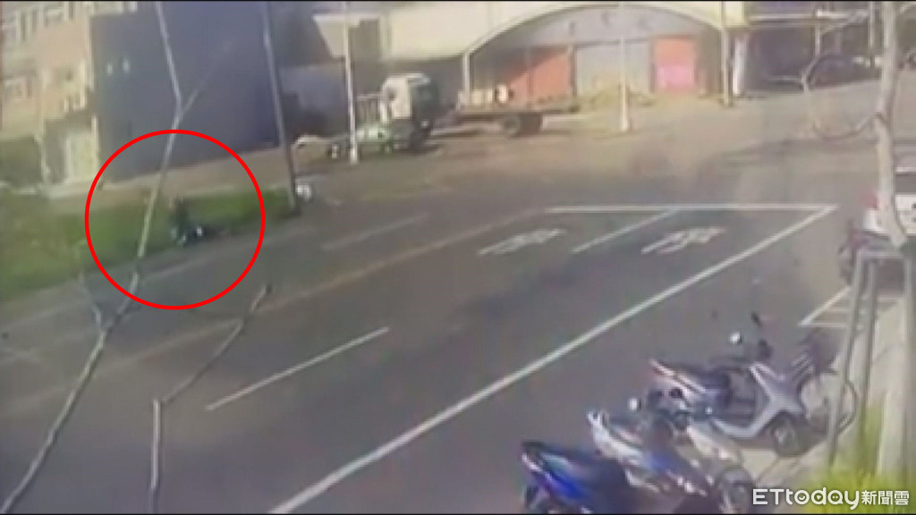 ▲頭份地區空曠處,近來頻頻出現12級強勁東北季風,1名路過騎士連人帶車被吹翻至草叢內。(圖/記者黃孟珍翻攝)