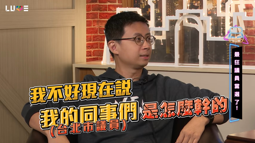 網紅「呱吉」邱威傑當選台北市議員,日前他在網路節目上爆料,市議員可以撈錢,否則怎麼會有人花一兩千萬去選舉,這絕對是有好處的,而說到重點時卻一時嘴軟「我不好說我現在的同事們是怎麼幹的」。