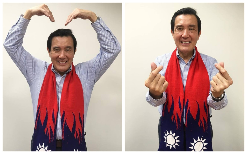 2018年最後一天,前總統馬英九31日在臉書祝賀大家新年快樂,還發布兩張照片,照片中的他圍國旗圍巾應景,自稱圍上圍巾秒變暖男,還俏皮地比出大愛心和小愛心。