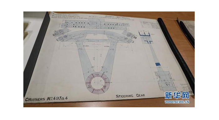 根據《新華社》報導,一套名為「中國巡洋艦舵機設計圖」的原始設計圖被發現,這套設計圖共有7張,上面用紅、藍、黑三色手繪標註艦船舵機系統,數據具體到諸如舵柱直徑,對艦型、艙室佈局等也細緻描繪。舵機是改變艦船航向的操作系統,作用類似「魚尾」。