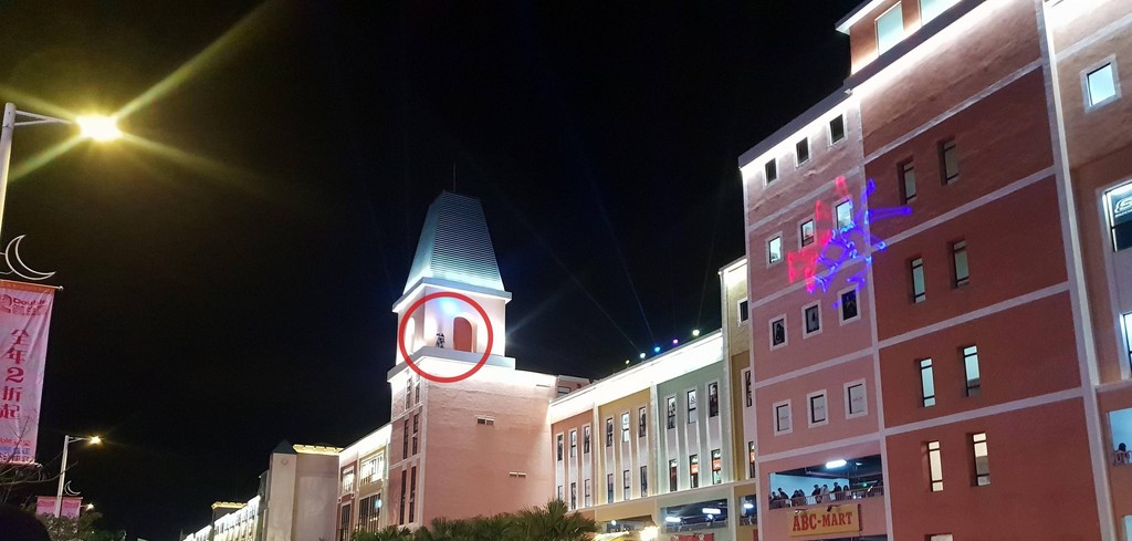 「有沒有攝影師也要具備忍者技能的八卦?」一位網友1日凌晨在PTT「八卦版」發文表示,自己今年在台中麗寶跨年,無意間抬頭時,發現屋簷上有個「黑點」,用手機拉近仔細一看,才發現原來是辛苦的「攝影師」。