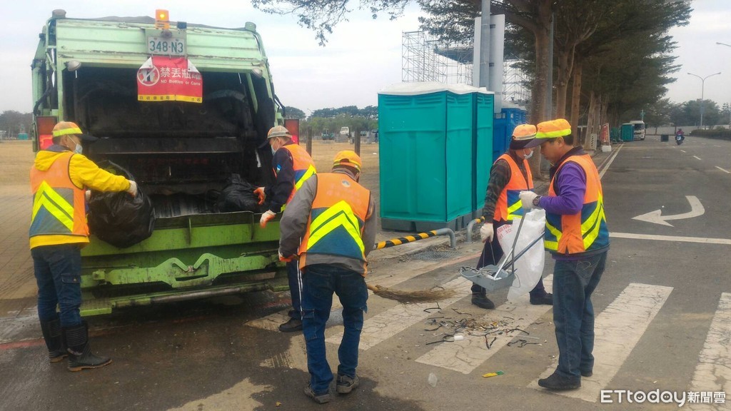 ▲台南市環保局配合市府「跨年三部曲」迎新年活動,活動結束立即動員清理場地,迅速恢復原貌,讓全體市民乾淨迎新年。(圖/記者林悅翻攝)