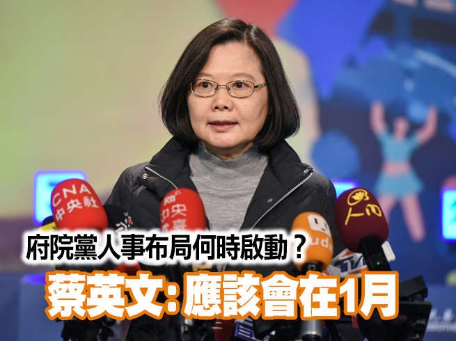 民進黨在2018年九合一選舉慘敗,黨內外出現檢討聲量,府院黨人事布局何時啟動備受關注。對此,總統蔡英文1日中午與媒體餐敘時表示,如果有調整,應該會在1月,整個布局會看整個戰局的變化做調整。