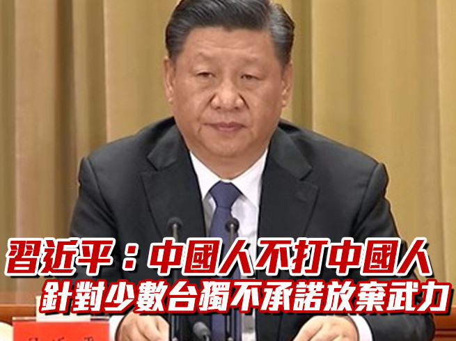 習近平表示,「中國人不打中國人,我們願意以最大誠意、盡最大努力爭取和平統一的前景,因為以和平方式實現統一,對兩岸同胞和全民族最有利。我們不承諾放棄使用武力,保留採取一切必要措施的選項,針對的是外部勢力干涉和極少數『台獨』分裂分子及其分裂活動,絕非針對台灣同胞。兩岸同胞要共謀和平、共護和平、共用和平。」