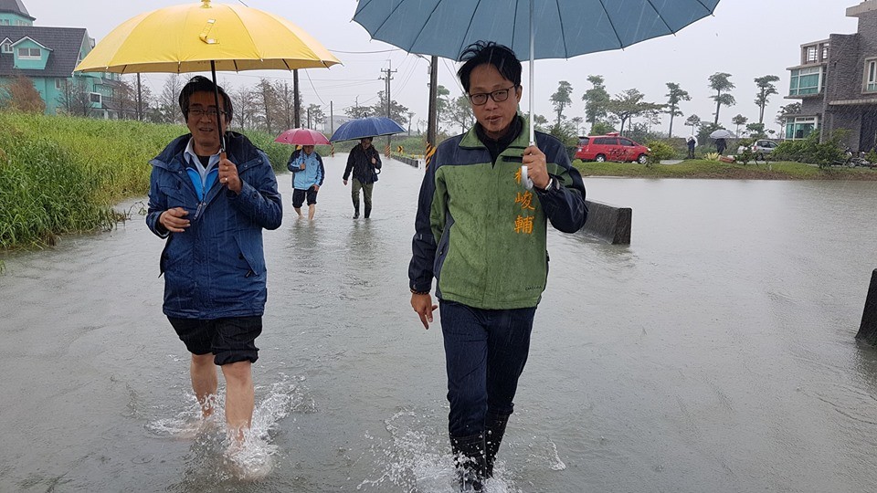 楊弘旻指出,住戶的房子都加高地基,高於路面,因此積水並未淹入屋內,不過出入道路已經變水路,無法出入,如果要就醫或外出都困難, 短期措施應該把路基加高50公分,避免路面被淹沒,長遠之計應設置小型抽排水站,排除積水。