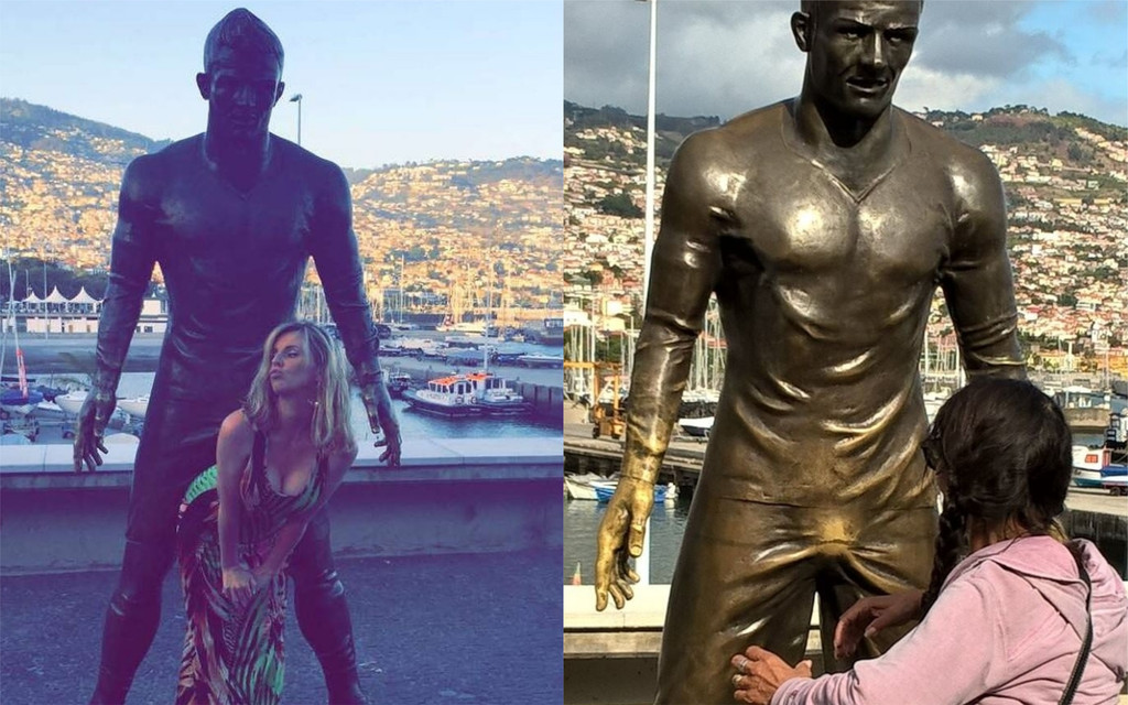 葡萄牙足球明星C羅(Cristiano Ronaldo)2014年在老家豐沙爾投資,經營副業「佩斯塔納CR7酒店」(Pestana CR7 hotel),門外還擺了一尊比真人還高的C羅銅像,但因為太過「雄偉」,導致不少女生想入非非,一摸就不肯罷手,導致C羅雕像的重點部位被「越摸越亮」。