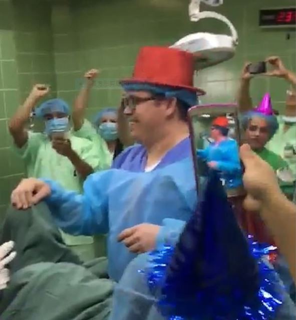 ▲▼一名產婦正在痛苦分娩時,眾多醫護人員卻手舞足蹈,興奮的倒數迎接新年。(圖/翻攝自網路)