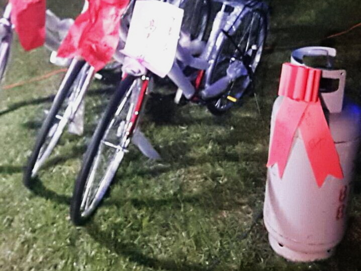 ▲花蓮縣光復鄉馬佛部落跨年晚會中,有人捐桶裝瓦斯當摸彩品,網友笑翻了,直呼是「地表上最酷的摸彩品」。(圖/袁先生提供)
