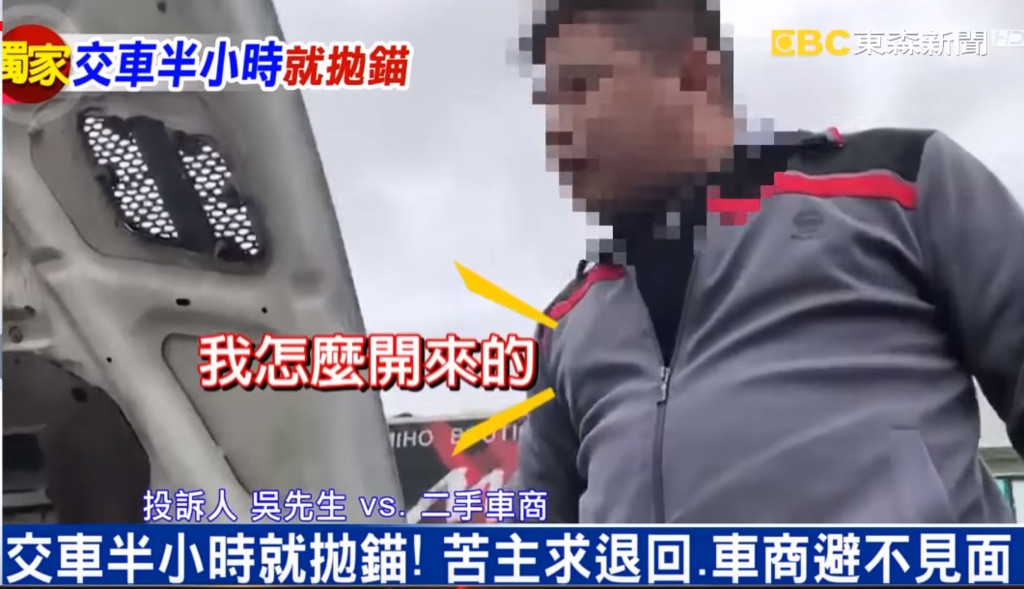 豈料,車商去年12月29日晚間將車開到中和面交後,吳男30日凌晨開上高速公路竟因水箱漏水而直接拋錨,短短30分鐘就出事,氣得他通知對方要求退貨,卻被車商嗆聲說,「本來有問題,我怎麼開來的」,引爆糾紛後車商也避不見面。