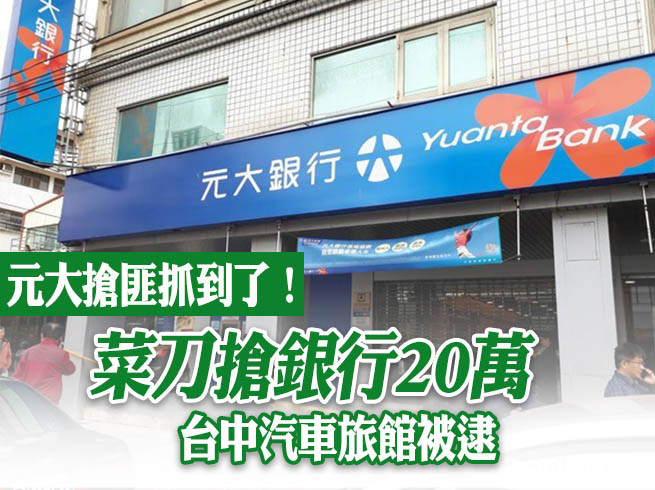 台中沙鹿元大銀行4日驚傳搶案,遭人持刀搶走20萬元。警方偵辦後,一度抓錯人,但稍早晚間8點30分在西屯區一家汽車旅館內逮捕44歲蔡姓男子,目前初步發現蔡男有精神疾病,正進一步釐清犯案動機。