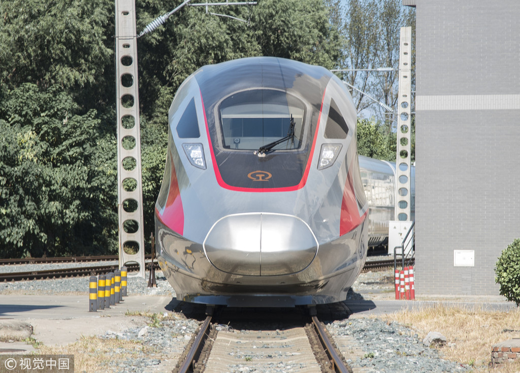 ▲CR400AF-B型17輛超長版「復興號」中國標準動車組車頭特寫。(圖/CFP)