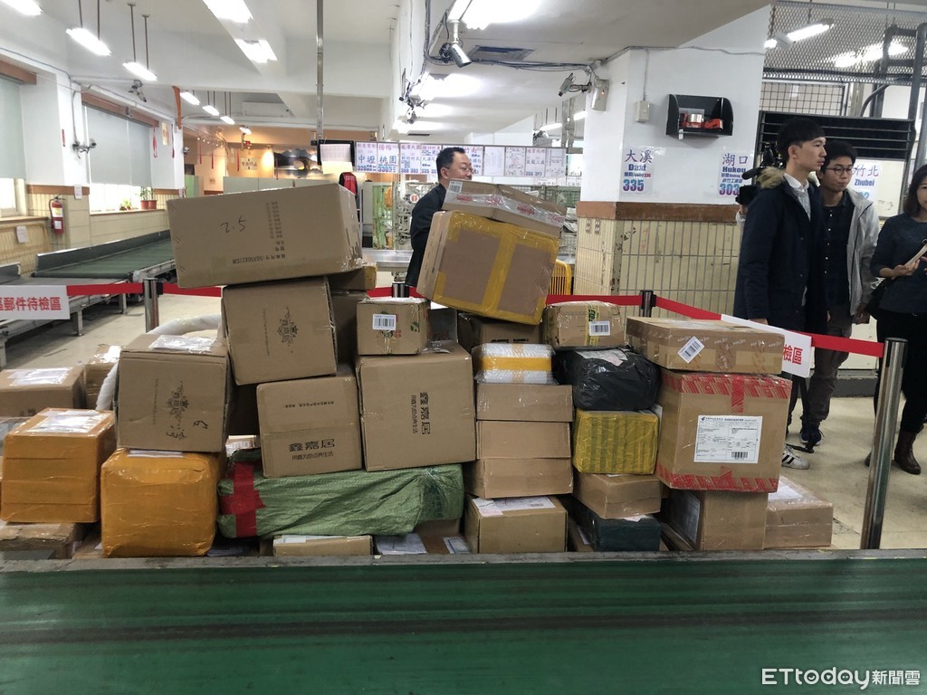 ▲中華郵政公司今透露疫情爆發後,在X光機和防疫犬查驗之下,共查獲109件肉品包裹。(圖/記者曹悅華攝)