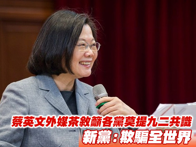 總統蔡英文5日與數10家外媒茶敘時指出,北京當局將「九二共識」重新定義為「一個中國、一國兩制」,這名詞不再有模糊空間,呼籲全台各黨「不要再講九二共識」、「不要出賣人民的意志和信任」。對此,新黨表示,在野黨無意也無力出賣台灣,但執政者卻欺騙全世界。