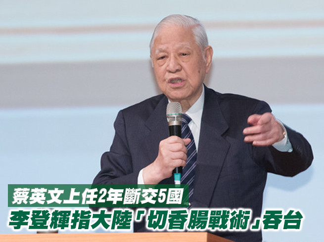 總統蔡英文上任2年多以來,有5個邦交國與我國斷交。據日本產經新聞5日報導,前總統李登輝對此表示,大陸採「切香腸戰術」想併吞台灣,但台灣政府與人民危機感太薄弱。
