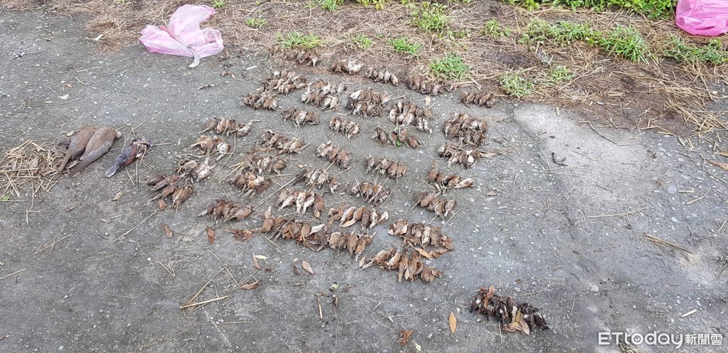 台東市郊一處農田剛最近剛收成收成沒幾天,連日來農民發現田裡及周邊出現上千隻鳥屍體,疑似遭人放毒餌誘殺,數量高達千隻,種類大部分為斑紋鳥,但也有少數其他鳥類如白腰文鳥、麻雀等鳥類,其中甚至有保育類的環頸雉,鳥屍遍布場面令人怵目驚心。