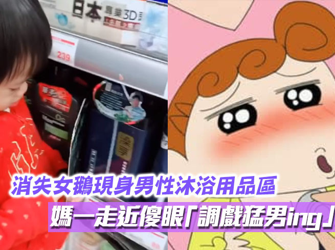 媽媽表示,只是一轉眼的時間女兒就不見了,「嚇壞媽媽我了」,最後在男士沐浴用品區發現人影,「一動也不動...這...我該注意什麼?」從影片可看見,靠著貨架的女兒正在用手指摸看板上男模的胸部,表情相當認真。