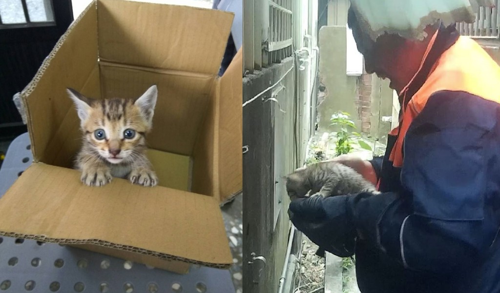 當時到現場協助救援的劉姓消防員,熟練的將小貓抱在身上,並說要不是家裡已經養4隻了,真想把牠留在身邊,且之前所飼養的4隻小貓也都是在各種不忍的情況下被他救起的,還好這隻受困牆內小貓很幸運,被救了出來,希望牠不會再誤入歧途了。