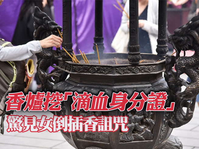 ▲香爐挖「滴血身分證」人頭插5針!驚見女倒插香詛咒。(圖/翻攝監視器畫面)