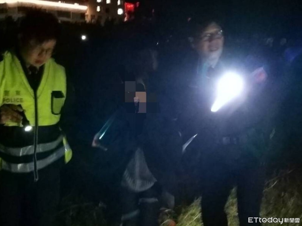 ▲員警摸黑在河堤邊搜尋,終於尋獲負氣離家欲尋短的女子。(圖/台東縣警察局提供,下同)