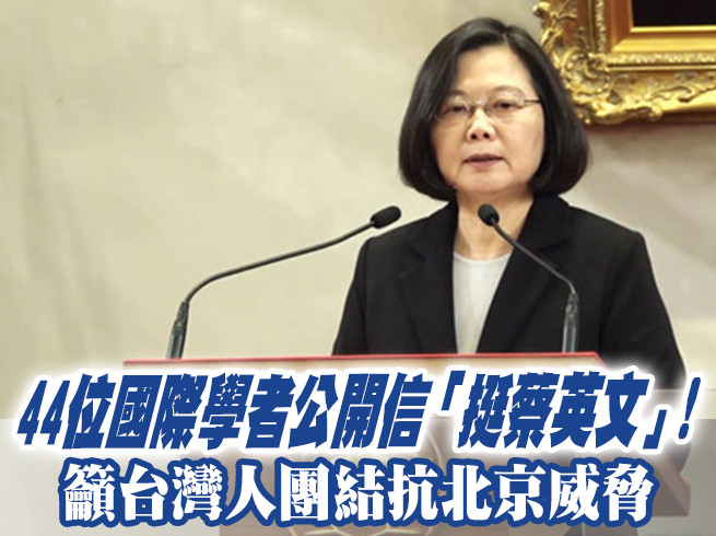 44名國際學者專家、前政府官員等人今日發表一封公開信,並投書媒體,內容力挺蔡英文總統的主張,並稱讚岐回應習近平談話是正確反應。公開信中,學者們也呼籲不同政治立場的台灣人民,了解並共同對抗中國威脅,以免讓北京有分化台灣社會的機會。