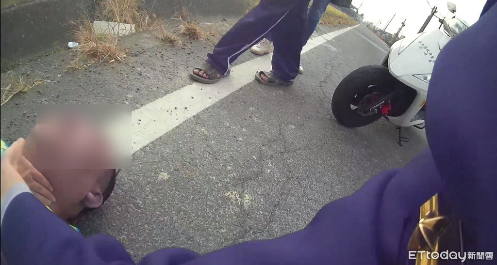 ▲劉姓退休警察運動昏倒,女警蔡佩玲與民眾緊急輪流做CPR救人。(圖/記者陳崑福翻攝,以下同)