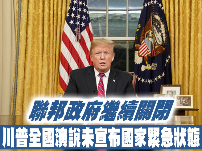 美國總統川普於美東時間8日晚間9時(台灣時間1月9日早上10時)發布全國演說,外界關注美墨邊境的圍牆資金問題,他表示,很多美國人民被非法移民所傷害,美國沒有空間容納非法移民。過程中,他並未提及國家進入緊急狀態。