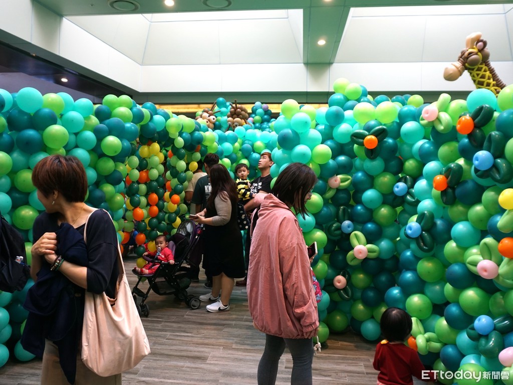 ▲南紡購物中心於5樓夢想舞台構築「氣球遊藝思探索草地樂園」,邀請民眾來拍照探險。(圖/記者林悅翻攝,下同)
