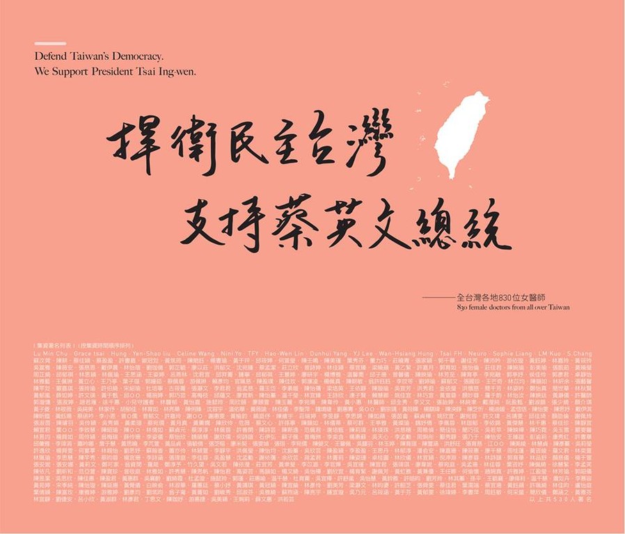 ▲女醫師連署挺蔡英文。(圖/翻攝女醫守護民主台灣臉書)