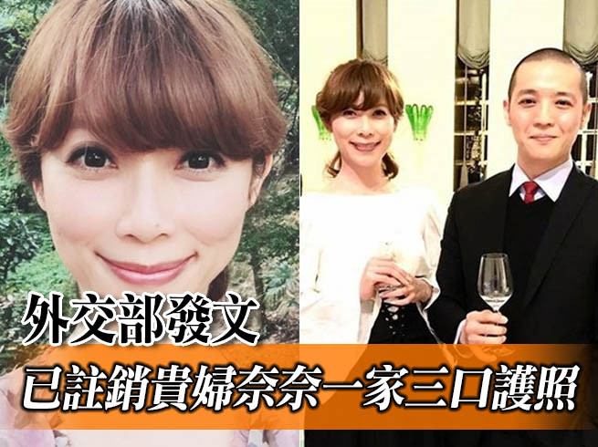 外交部發言人李憲章上午表示,領務局迄未收到相關來函註銷護照,但下午證實,外交部領務局已於中午收到地檢署公文,領務局已經依法立即註銷貴婦奈奈一家3人的護照,同時函文我駐加拿大代表處、駐多倫多及駐溫哥華辦事處,通知加拿大政府相關機關。