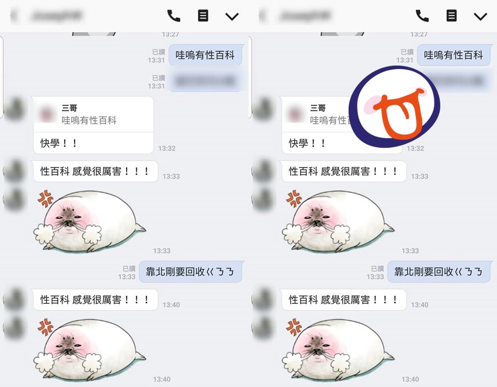 三哥表示,打完下一句話後她立刻就發現打錯字,但是正要回收訊息之際卻被友人搶先已讀,還用回覆功能留下證據表示「快學!」、「性百科,感覺很厲害!!」讓她有理說不清,只能一直澄清是打字太快所致。