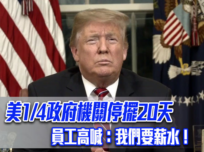 《路透社》報導,川普要求國會同意撥款57億美元在美國南部與墨西哥邊界築牆,造成川普與國會議員進入僵局,更導致聯邦政府關門,約有80萬名聯邦政府雇員被迫放無薪假或無薪工作。