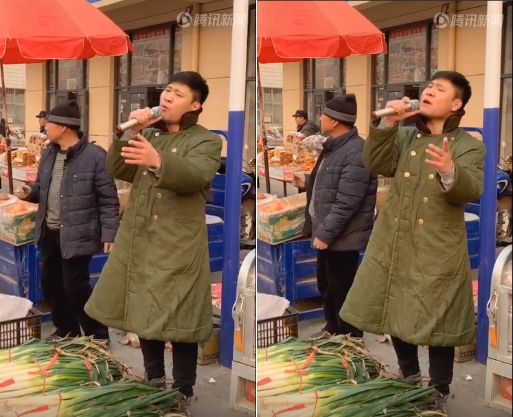 ▲河北菜販唱歌激似張學友。(圖/翻攝自騰訊視頻)