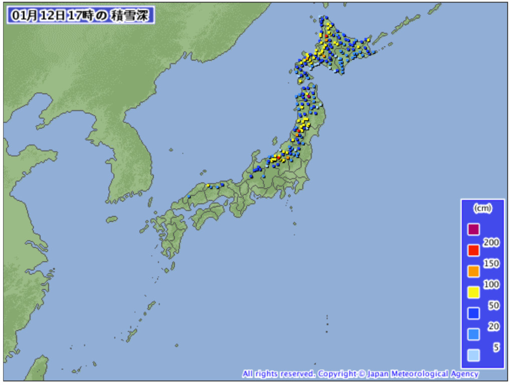《讀賣新聞》報導,關東平地地區從2018年12月24日至1月11日為止,已經連續19日未曾降雨,怎知12日就降下本季初雪。但這場初雪最多持續到13日清晨,之後將再度回復乾冷天氣。